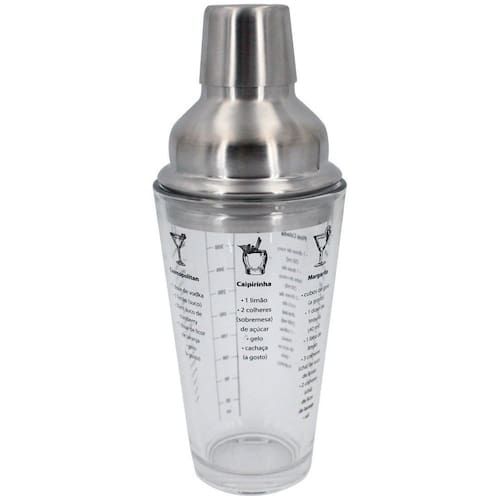 Coqueteleira Open Bar Em Vidro E Aco Inox Com Tampa 450Ml D8,9Xa22Cm Dynasty CARACTERÍSTICAS: - As coqueteleiras são práticas e fazem qualquer anfitrião virar um verdadeiro bartender. - A Coqueteleira 450 ML é perfeita para preparar aquele delicioso drink refrescante, além de possuir a receita de drinks clássicos no corpo de seu copo, que ajudam a reproduzi-los com maior precisão. Torne seus encontros ainda mais prazerosos com drinks exclusivos para seus convidados.