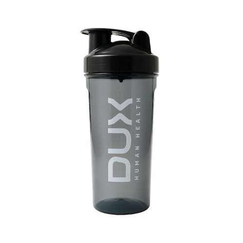 A Coqueteleira Preta Dux 850ml é um acessório prático desenvolvido para misturar suplementos e bebidas de forma rápida e eficiente.