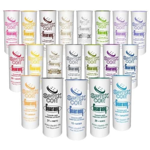 Lembre-se que um tubete é suficiente para 300 gramas de tecido, ou seja, divida o peso da roupa em gramas por 300 e obtenha quantos tubetes serão necessários. Exemplo: 900/300 = 3 tubetes Biquini - 100g - 1/3 Calça Adulto - 700g - 2 e 1/3 Calça Jeans - 800g - 2 e 2/3 Calça Jeans Infantil - 450g - 1 e 1/2 Camiseta 1/2 Manga - 100g - 1/3 Camiseta Regata - 80g - 1/4 Fronha - 180g - 2/3 Lençol Casal - 500g - 1 e 2/3 Lençol Solteiro - 300g - 1 Maiô - 200g - 2/3 Short - 100g - 1/3 Sunga - 50g - 1/6 Toalha Banho - 800g - 2 e 2/3 Toalha Rosto - 180g -2/3 Especial para tingir peças de acrílico com exceção dos corantes 90-Dourado e 91-Prateado e acetato para segmentos de moda e decoração. Instruções de uso: 1 Dissolva o Sintexcocor em água fervente. 2 Misture o Sintexcor dissolvido em um recipiente com água quente o suficiente para cobrir a peça a ser tingida. 3 Lave a peça e, ainda úmida, mergulhe no banho de tingimento, mexendo sempre por 30 minutos. Mantenha sob fervura. 4 Retire a peça do banho e enxágue bem em água corrente. 5 Coloque no Fixacor por 30 minutos, seguindo as instruçõesda embalagem. Indicação: Recuperação de roupas, tie dye, customização, artesanato, decoração, etc. Peso líquido: 40g Quantidade de tecido seco: 300g Ean: 7891988041177