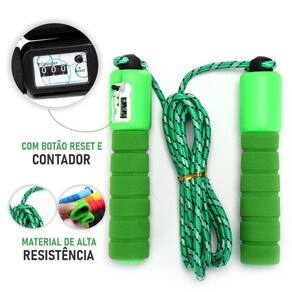 Corda De Pular Com Contador de Pulos Funcional Profissional Corda de Pular Com Contador de Pulos Profissional Funcional Para Atividades Físicas, Crossfit e Academia Pular Corda é considerado um dos melhores exercícios de alta intensidade, muito conhecido pela queima de 1300 calorias por hora, uma das maneiras mais eficazes da perca de gordura. Além de ser uma brincadeira preferida de muita gente, trazendo vários beneficios para a saúde infantil e adulta. - Corda Ajustavél - Podendo ser ultilizado por Adultos e Crianças- Corda medindo 2,50m - Empenhadura medindo 13cm- Contador de pulos vai até 999 - Possui Botão reniciador do contador- Para que seja contabilizado a corda precisa de um giro completo Caractéristicas:Validade: IndeterminadaTamanho da corda: 2,5mPeso Aproximado: 108gTipo de Produto: Pular Corda com Empenhadura de espuma anti escorregadia e ContadorComposição: Plástico e Nylon Cor: Variado conforme disposição em estoque Você pode está verificando atráves do campo de perguntas
