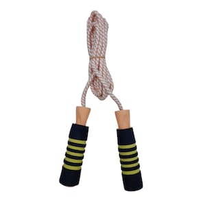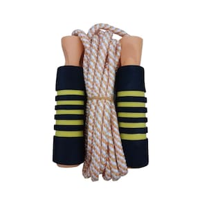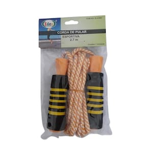 Material do Produto: Nylon, plástico e borracha Cor da Manopla: Amarelo, laranja e preto emborrachado Tamanho total da manopla: 13 cm Tamanho da parte emborrachada da manopla para colocar as mãos: 10 cm Cor da corda: Laranja e branco listrado Tamanho da corda: 2,70 metros ajustável