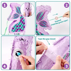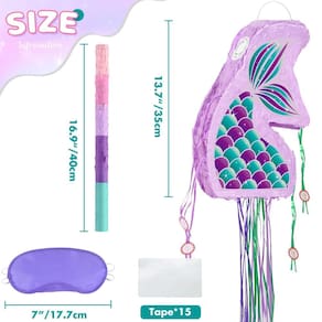 Mergulhe em um mundo subaquático mágico com nossa piñata sereia, a peça central encantadora para sua próxima celebração! Esta piñata lindamente trabalhada é projetada para cativar e encantar convidados de festas de todas as idades com seu tema peculiar de sereia. Feita com cuidado e atenção aos detalhes, esta piñata é feita de materiais de alta qualidade para garantir durabilidade e longevidade. Sua estrutura resistente pode suportar os movimentos entusiasmados e puxões dos festeiros, tornando-o um acessório de festa confiável e duradouro. Completo com uma venda para a melhor experiência Piñata, este conjunto inclui tudo o que você precisa para trazer a magia do oceano para sua celebração. Deixe seus convidados mergulharem no mundo encantador das sereias com nossa sereia Piñata, uma adição encantadora que tornará sua festa uma experiência memorável e encantadora para todos! - PIÑATA DE SERREIA COLAPSÍVEL - Vamos dar uma ótima festa de sereia! Adicione esta pequena piñata de sereia às suas decorações de festa temáticas de sereia para impressionar seus convidados com um tema de festa de aniversário de sereia perfeitamente coordenado. - Fácil de encher – A piñata sereia é uma pequena Piñata, 34,8 cm de altura, com orifícios pré-fabricados na parte superior e um laço resistente para pendurar. Você pode encher a piñata com até 1,3 kg de recheios, doces, chocolate e pendurá-la em qualquer lugar que você quiser - Fácil de dobrar – A piñata de sereia de aniversário para meninas apresenta um design de cordão, facilitando a abertura e a dobra. O design dobrável exclusivo é fácil de transportar e armazenar, perfeito para festas de aniversário. Bem-vindo a assistir ao vídeo de uso. - Qualidade – A piñata de aniversário para meninas é feita de papel ondulado grosso, e os adesivos requintados a tornam mais vívida. Materiais confiáveis garantem sua durabilidade para que você possa jogar por mais tempo. Todo mundo tem uma chance de acertar! Cheio de atmosfera de festa de sereia. - Grande surpresa – O conjunto de piñata Wernnsai inclui piñata sereia, tapa-olho, adesivos de morcego e selo de caverna. Você pode usá-los para começar jogos de festa imediatamente sem necessidade de preparação adicional. Perfeito para festas de aniversário, festas temáticas de sereia, carnaval infantil e outros eventos semelhantes.