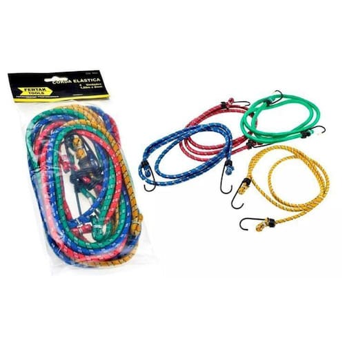 Corda Elástica 1,20m x 8mm Kit com 4 Unidades Fertak Tools Elásticos reforçados ajudam você a manter em segurança os seus objetos. Prenda bagagens em bicicletas, motos e em muitos outros lugares. Embalagem com 04 peças e comprimento de 1,2m cada. - Cores dos elásticos podem variar de acordo com lote disponível. - Imagens Ilustrativas - Marca: Fertak Ean: 7908642000934