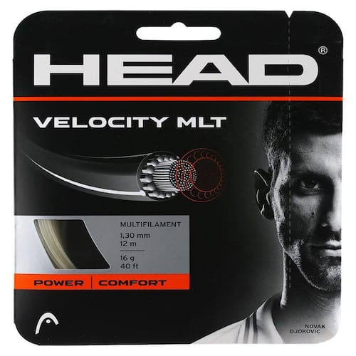 Corda Head Velocity Set Individual multifilamento que fornece uma combinação perfeita de potência e toque, graças à sua construção especial, juntamente com um grande potencial de spin devido à aditivos de baixa fricção inovadoras em seu revestimento.