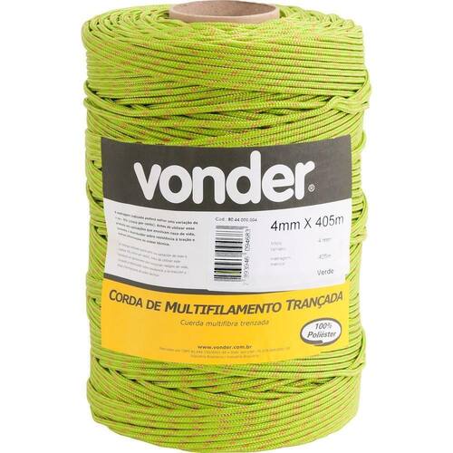 Conteúdo da embalagem1 RoloAplicações e dicas de usoIdeal para amarração de cargas, fardos, confecção de barrigueiras, redes de proteção esportivas, utilização em frigoríficos, cortinas de aviários, na agricultura em geral. Não utilizar em cadeiras suspensas, cabos de guia de segurança e fixação de trava quedas.Destaques e diferenciaisFabricada em 100% poliéster - PET, tornando a corda mais macia e possui excelente resistência contra os raios UV DETALHES TÉCNICOS Carga de ruptura: 438,0 kgf Diâmetro da corda: 6,0 mm Comprimento total da corda: 180,0 m Peso aproximado por rolo/carretel: 4,5 kg Marca: Não Informado