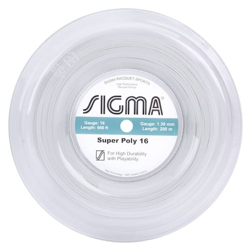 A Corda para Raquete de Tênis Sigma Super Poly foi desenvolvida com um monofilamento de poliéster para uma maior durabilidade, sua construção faz desse encordoamento uma corda de excelente controle. Escolha ideal para qualquer nível de tenista, que busca economia aliado a uma grande durabilidade