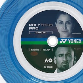 Características Técnicas Perfil: ControleComposição: Monofilamento com polímero de poliéster, formato pentagonalCor: AzulEspessura: 1.25mm / 16LEmbalagem: Rolo com 200 metrosOrigem: Importada Benefícios da Corda Yonex PolyTour 16L Mais Controle nas JogadasFormato pentagonal que aumenta a aderência da bola para golpes mais precisos e com mais spin.