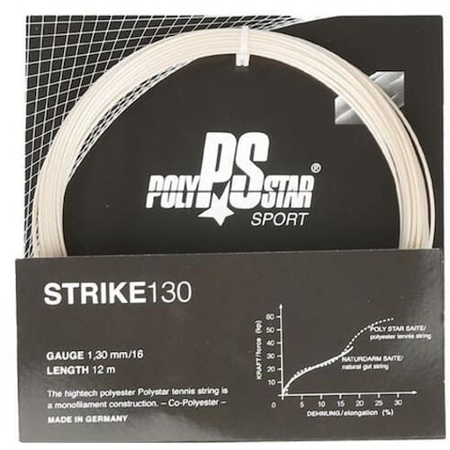A Polystar Strike oferece uma resposta firme e controlada, ideal para jogadores que valorizam precisão e consistência. Esta corda de monofilamento de poliéster oferece excelente durabilidade e manutenção da tensão, mesmo em golpes fortes. Embora menos potente que as cordas de co-poly mais dinâmicas, a Strike recompensa golpes completos e rápidos com controle e potencial de spin excepcionais. Sua sensação precisa e resposta previsível a tornam uma escolha confiável para jogadores de base competitivos que buscam o máximo controle sobre suas tacadas.