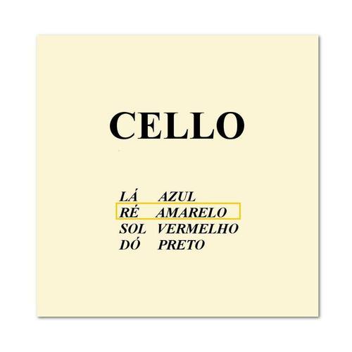 Especificações Técnicas: - Tipo de corda: Corda Ré para violoncelo - Material: Aço - Produção artesanal - Núcleo de fibras sintéticas - Alta qualidade sonora - Ótima projeção sonora - Timbre agradável - Durável - Custo-benefício excelente