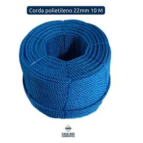 - Qual é o material da corda? A Corda Torcida 100% Polietileno Azul - 22mm 10 Metros é fabricada em polietileno multifilamento.