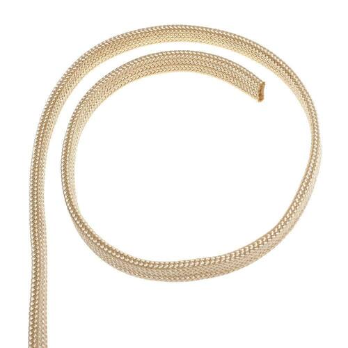 Corda trançada chata fabricada em 100% Polipropileno na cor Champanhe, bitola de 15mm com alta flexibilidade e resistência. Pode ser utilizada de várias maneiras como em cabos de cabresto, rédeas etc.