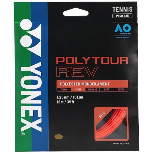 Conheça as características da Corda Yonex PolyTour REV 16L 1.25mm Laranja - Set Individual- Perfil: Controle e durabilidade;