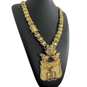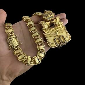 Cordão 15mm Dubai Pingente Visionário 00 Banhado A Ouro 18k