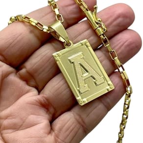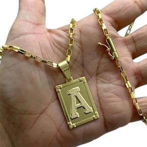 Cordão 3mm Tijolinho Curto + Pingente Letra - Banhado a ouro Detalhes do Produto: Material: ligas metálicas de alta qualidade, especialmente tratadas para fixação e absorção do ouro, com acabamento em verniz protetor. Aparência: visual idêntico ao ouro maciço. Produção: artesanal, com atenção meticulosa aos detalhes. Banho: 10 camadas espessas de ouro 18k, finalizadas com verniz antialérgico . Elos: soldados varia conforme o modelo . Pedras: zircônias brilhantes cravejadas quando aplicável . Tamanhos Disponíveis: Cordões Masculinos: 70cm padrão e 60cm sob consulta/Pedido Via Chat . Cordões Femininos: 50cm padrão e 45cm sob consulta/Pedido Via Chat . Pulseiras: 21cm padrão ; tamanhos de 18cm a 23cm sob consulta/Pedido Via Chat. Pingentes: conforme imagens; consulte para mais detalhes via chat. Espessuras Recomendadas para Cordões / Pingentes: P: 1mm a 4mm M: 4mm a 8mm G: 6mm a 13mm Gg: 12mm a 18mm Incluso na Compra: Saquinho de organza para armazenamento seguro. Caixa elegante, perfeita para presente. Cupom de desconto para a próxima compra. Flyer com outros produtos da coleção. Carta de agradecimento personalizada. Adesivo da marca ToJoia18k. Informações Adicionais: : 6 meses termos acompanham o produto . Devolução: 7 dias para devolução sem questionamentos. Envio: despacho em até 24 horas úteis após confirmação do pagamento. Cuidados com a Peça: Evite contato com produtos químicos; aguarde o perfume secar antes de usar. Evite contato com shampoo, condicionadores e suor excessivo. Armazene em local seco, preferencialmente no saquinho de organza fornecido. Uso no mar e piscina é permitido; lave com água corrente e sabão neutro após. Por que Escolher a ToJoia18k Semi-joias luxuosas que combinam estilo, qualidade e sofisticação. Banho espesso de ouro 18k, garantindo brilho duradouro e acabamento impecável. Design exclusivo e produção artesanal, perfeitos para qualquer ocasião. Materiais premium que asseguram durabilidade. Ao escolher uma semi-joia ToJoia18k, você investe em qualidade, elegância e uma experiência única. Aguardamos sua compra Observação: pode ocorrer variação no fecho raramente . Imagens reais, sem edição. Qualquer dúvida, estamos à disposição para esclarecimentos. Marca: Tojoia18K