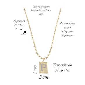 Corrente Colar Cordão modelo unissex pingente letra inicial P banhado em Ouro 18k.