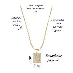 Corrente Colar Cordão modelo unissex pingente letra inicial U banhado em Ouro 18k. Colar com Pingente Retangular banhado em Ouro 18k, com acabamento impecável em Ródio branco que destaca ainda mais a beleza da peça. O centro do pingente traz uma letra inicial personalizada, tornando-o uma joia exclusiva e carregada de significado. Delicado e sofisticado, este colar é perfeito para quem busca elegância e personalização em um só acessório, ideal para presentear ou usar em ocasiões especiais. Especificações do produto: Colar banhado a Ouro 18k. Antialérgico. Modelo do fecho do colar: lagosta. Espessura do colar: 2 mm. Peso do colar com o pingente: 6 g. Pingente letra inicial retangular com detalhes em Ródio branco banhado a Ouro 18k. Tamanho do pingente: 3 cm altura x 2 cm largura. Acompanha linda caixinha de presentes. Seguindo nossas orientações de uso no certificado de a joia permanecerá conservada por longos anos ou até décadas Marca: Não Informado