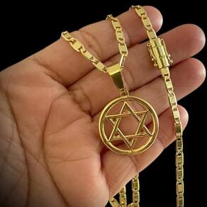 Cordão 5mm Piastrine + Pingente Estrela Davi Banhado a ouro Detalhes do Produto: Material: ligas metálicas de alta qualidade, especialmente tratadas para fixação e absorção do ouro, com acabamento em verniz protetor. Aparência: visual idêntico ao ouro maciço. Produção: artesanal, com atenção meticulosa aos detalhes. Banho: 10 camadas espessas de ouro 18k, finalizadas com verniz antialérgico . Elos: soldados varia conforme o modelo . Pedras: zircônias brilhantes cravejadas quando aplicável . Tamanhos Disponíveis: Cordões Masculinos: 70cm padrão e 60cm sob consulta/Pedido Via Chat . Cordões Femininos: 50cm padrão e 45cm sob consulta/Pedido Via Chat . Pulseiras: 21cm padrão ; tamanhos de 18cm a 23cm sob consulta/Pedido Via Chat. Pingentes: conforme imagens; consulte para mais detalhes via chat. Espessuras Recomendadas para Cordões / Pingentes: P: 1mm a 4mm M: 4mm a 8mm G: 6mm a 13mm Gg: 12mm a 18mm Incluso na Compra: Saquinho de organza para armazenamento seguro. Caixa elegante, perfeita para presente. Cupom de desconto para a próxima compra. Flyer com outros produtos da coleção. Carta de agradecimento personalizada. Adesivo da marca ToJoia18k. Informações Adicionais: : 6 meses termos acompanham o produto . Devolução: 7 dias para devolução sem questionamentos. Envio: despacho em até 24 horas úteis após confirmação do pagamento. Cuidados com a Peça: Evite contato com produtos químicos; aguarde o perfume secar antes de usar. Evite contato com shampoo, condicionadores e suor excessivo. Armazene em local seco, preferencialmente no saquinho de organza fornecido. Uso no mar e piscina é permitido; lave com água corrente e sabão neutro após. Por que Escolher a ToJoia18k Semi-joias luxuosas que combinam estilo, qualidade e sofisticação. Banho espesso de ouro 18k, garantindo brilho duradouro e acabamento impecável. Design exclusivo e produção artesanal, perfeitos para qualquer ocasião. Materiais premium que asseguram durabilidade. Ao escolher uma semi-joia ToJoia18k, você investe em qualidade, elegância e uma experiência única. Aguardamos sua compra Observação: pode ocorrer variação no fecho raramente . Imagens reais, sem edição. Qualquer dúvida, estamos à disposição para esclarecimentos. Marca: Não Informado Ean: 7897043155438