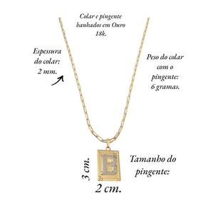 Corrente Colar Cordão modelo unissex pingente letra inicial B banhado em Ouro 18k.