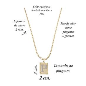 Corrente Colar Cordão modelo unissex pingente letra inicial P banhado em Ouro 18k. Colar com Pingente Retangular banhado em Ouro 18k, com acabamento impecável em Ródio branco que destaca ainda mais a beleza da peça. O centro do pingente traz uma letra inicial personalizada, tornando-o uma joia exclusiva e carregada de significado. Delicado e sofisticado, este colar é perfeito para quem busca elegância e personalização em um só acessório, ideal para presentear ou usar em ocasiões especiais. Especificações do produto: Colar banhado a Ouro 18k. Antialérgico. Modelo do fecho do colar: lagosta. Espessura do colar: 2 mm. Peso do colar com o pingente: 6 g. Pingente letra inicial retangular com detalhes em Ródio branco banhado a Ouro 18k. Tamanho do pingente: 3 cm altura x 2 cm largura. Acompanha linda caixinha de presentes. Seguindo nossas orientações de uso no certificado de a joia permanecerá conservada por longos anos ou até décadas Marca: Não Informado