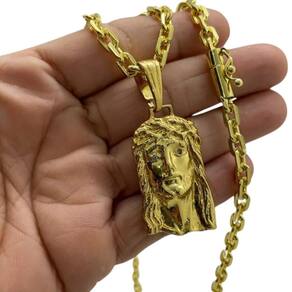 Cordão 6mm Cadeado + Pingente Jesus Face - Banhado a ouro Detalhes do Produto: Material: ligas metálicas de alta qualidade, especialmente tratadas para fixação e absorção do ouro, com acabamento em verniz protetor. Aparência: visual idêntico ao ouro maciço. Produção: artesanal, com atenção meticulosa aos detalhes. Banho: 10 camadas espessas de ouro 18k, finalizadas com verniz antialérgico . Elos: soldados varia conforme o modelo . Pedras: zircônias brilhantes cravejadas quando aplicável . Tamanhos Disponíveis: Cordões Masculinos: 70cm padrão e 60cm sob consulta/Pedido Via Chat . Cordões Femininos: 50cm padrão e 45cm sob consulta/Pedido Via Chat . Pulseiras: 21cm padrão ; tamanhos de 18cm a 23cm sob consulta/Pedido Via Chat. Pingentes: conforme imagens; consulte para mais detalhes via chat. Espessuras Recomendadas para Cordões / Pingentes: P: 1mm a 4mm M: 4mm a 8mm G: 6mm a 13mm Gg: 12mm a 18mm Incluso na Compra: Saquinho de organza para armazenamento seguro. Caixa elegante, perfeita para presente. Cupom de desconto para a próxima compra. Flyer com outros produtos da coleção. Carta de agradecimento personalizada. Adesivo da marca ToJoia18k. Informações Adicionais: : 6 meses termos acompanham o produto . Devolução: 7 dias para devolução sem questionamentos. Envio: despacho em até 24 horas úteis após confirmação do pagamento. Cuidados com a Peça: Evite contato com produtos químicos; aguarde o perfume secar antes de usar. Evite contato com shampoo, condicionadores e suor excessivo. Armazene em local seco, preferencialmente no saquinho de organza fornecido. Uso no mar e piscina é permitido; lave com água corrente e sabão neutro após. Por que Escolher a ToJoia18k Semi-joias luxuosas que combinam estilo, qualidade e sofisticação. Banho espesso de ouro 18k, garantindo brilho duradouro e acabamento impecável. Design exclusivo e produção artesanal, perfeitos para qualquer ocasião. Materiais premium que asseguram durabilidade. Ao escolher uma semi-joia ToJoia18k, você investe em qualidade, elegância e uma experiência única. Aguardamos sua compra Observação: pode ocorrer variação no fecho raramente . Imagens reais, sem edição. Qualquer dúvida, estamos à disposição para esclarecimentos. Marca: Não Informado Ean: 7897303643279