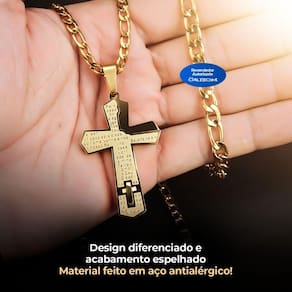 Kit Corrente Cordão Dourado Banhado Aço Inox com Pingente Cruz Pai Nosso + Pulseira Dourada Apresentamos este sofisticado kit que harmoniza elegância e espiritualidade, composto por uma corrente cordão dourada banhada aço inox com pingente cruz Pai Nosso e uma pulseira na cor dourada, conferindo um toque especial ao seu estilo. Características Detalhadas: - Corrente Cordão Dourada: - Largura: 6 mm (0,6 cm) - Comprimento: 60 cm - Pulseira Dourada: - Largura: 6 mm (0,6 cm) - Comprimento: 21,5 cm - Pingente Cruz Pai Nosso: - Comprimento: 4,0 cm - Largura do Pingente: 2,3 cm - Diâmetro do Passador: 6 mm - O pingente é esculpido delicadamente com a oração do Pai Nosso. Estilo Versátil e Significativo: Este kit é perfeito para homens com personalidade, incluindo aqueles que buscam conexão espiritual. Sua versatilidade permite o uso tanto de forma casual quanto em ocasiões mais formais, proporcionando não apenas um toque de elegância, mas também um significado profundo. Presente com Valor Espiritual: Além de ser uma expressão de estilo, este kit é uma excelente opção para presentear alguém especial. Fortaleça a fé daqueles que você ama, oferecendo um presente que combina beleza estética com um significado espiritual profundo. O Kit Corrente Cordão Dourado Banhado Aço Inox com Pingente Cruz Pai Nosso + Pulseira Dourada é mais do que uma joia; é uma manifestação de fé e estilo. Adquira agora este conjunto que combina elegância e espiritualidade de maneira única. Ean: 7898562923874