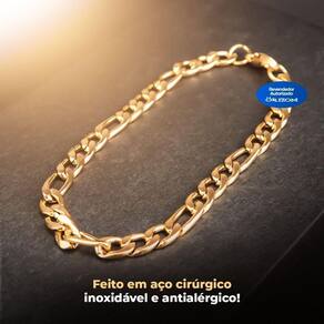 Cordão aço banhado ouro + pulseira + pingente cruz pai nosso Kit Corrente Cordão Dourado Banhado Aço Inox com Pingente Cruz Pai Nosso + Pulseira Dourada