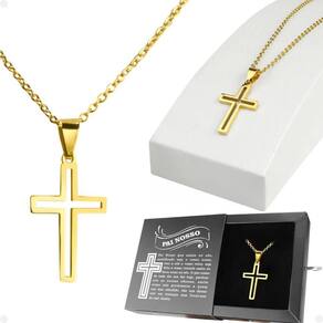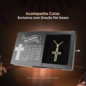 Cordão Dourado com Pingente Crucifixo e Caixa Premium com Gravação do Pai Nosso