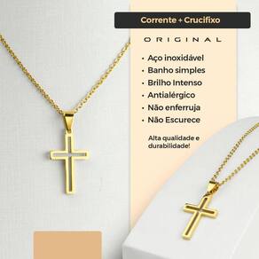 - 1 Pingente médio em forma de crucifixo, confeccionado com banho dourado de alta qualidade, design vazado no interior que combina estilo e espiritualidade.