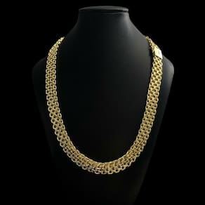 Cordão Cadeado Quádruplo 16mm - Banhado a Ouro 18k Detalhes do Produto: Material: ligas metálicas de alta qualidade, especialmente tratadas para fixação e absorção do ouro, com acabamento em verniz protetor. Aparência: visual idêntico ao ouro maciço. Produção: artesanal, com atenção meticulosa aos detalhes. Banho: 10 camadas espessas de ouro 18k, finalizadas com verniz antialérgico . Elos: soldados varia conforme o modelo . Pedras: zircônias brilhantes cravejadas quando aplicável . Tamanhos Disponíveis: Cordões Masculinos: 70cm padrão e 60cm sob consulta/Pedido Via Chat . Cordões Femininos: 50cm padrão e 45cm sob consulta/Pedido Via Chat . Pulseiras: 21cm padrão ; tamanhos de 18cm a 23cm sob consulta/Pedido Via Chat. Pingentes: conforme imagens; consulte para mais detalhes via chat. Espessuras Recomendadas para Cordões / Pingentes: P: 1mm a 4mm M: 4mm a 8mm G: 6mm a 13mm Gg: 12mm a 18mm Incluso na Compra: Saquinho de organza para armazenamento seguro. Caixa elegante, perfeita para presente. Cupom de desconto para a próxima compra. Flyer com outros produtos da coleção. Carta de agradecimento personalizada. Adesivo da marca ToJoia18k. Informações Adicionais: : 6 meses termos acompanham o produto . Devolução: 7 dias para devolução sem questionamentos. Envio: despacho em até 24 horas úteis após confirmação do pagamento. Cuidados com a Peça: Evite contato com produtos químicos; aguarde o perfume secar antes de usar. Evite contato com shampoo, condicionadores e suor excessivo. Armazene em local seco, preferencialmente no saquinho de organza fornecido. Uso no mar e piscina é permitido; lave com água corrente e sabão neutro após. Por que Escolher a ToJoia18k Semi-joias luxuosas que combinam estilo, qualidade e sofisticação. Banho espesso de ouro 18k, garantindo brilho duradouro e acabamento impecável. Design exclusivo e produção artesanal, perfeitos para qualquer ocasião. Materiais premium que asseguram durabilidade. Ao escolher uma semi-joia ToJoia18k, você investe em qualidade, elegância e uma experiência única. Aguardamos sua compra Observação: pode ocorrer variação no fecho raramente . Imagens reais, sem edição. Qualquer dúvida, estamos à disposição para esclarecimentos.