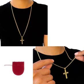 1. Design sofisticado: A corrente é confeccionada em aço de alta qualidade e banhada a ouro 18k, proporcionando um brilho duradouro e um visual luxuoso. O pingente de cruz vazada adiciona um toque de classe e espiritualidade ao conjunto.