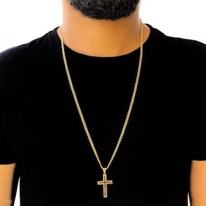 Elegância e fé em uma semijoia: corrente masculina banhada a ouro 18k com pingente de cruz vazada