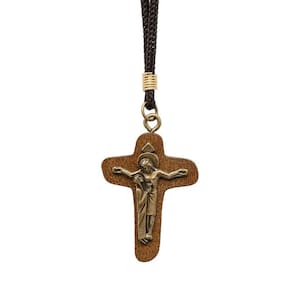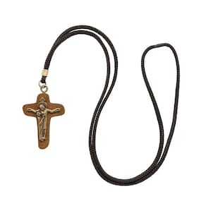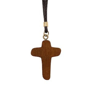 Características: Material: Madeira Altura da cruz: 4,3 cm Largura da cruz: 3,2 cm Comprimento total do cordão: aproximadamente 38,5 cm