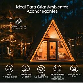 1 Cordão de Luz LED Solar de 10 metros1 Cabo USB-C para recarga1 Manual do Usuário