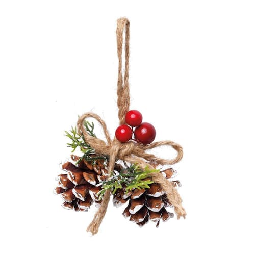Cordão decorativo com 2 pinhas, folhas e cerejas