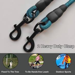 Coleira para cães de extremidade dupla com 2 ganchos resistentes. Rotação de 360 graus para resistir à torção. Funciona muito bem como uma corda externa para cães para amarrar em uma árvore ou corrimão; usada como varal; também funciona como uma corda de agrupamento, alça de bagagem, etc.