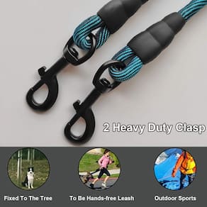 Coleira para cães de extremidade dupla com 2 ganchos resistentes. Rotação de 360 graus para resistir à torção. Funciona muito bem como uma corda externa para cães para amarrar em uma árvore ou corrimão; usada como varal; também funciona como uma corda de agrupamento, alça de bagagem, etc.