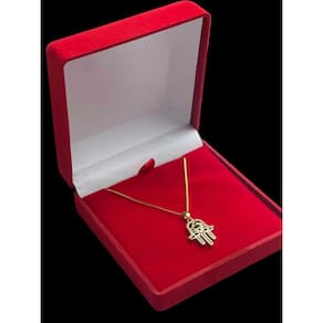 Cordão Feminino 1mm Mão de Fatima Hamsá Banhado a Ouro 18k Detalhes do Produto: Material: ligas metálicas de alta qualidade, especialmente tratadas para fixação e absorção do ouro, com acabamento em verniz protetor. Aparência: visual idêntico ao ouro maciço. Produção: artesanal, com atenção meticulosa aos detalhes. Banho: 10 camadas espessas de ouro 18k, finalizadas com verniz antialérgico . Elos: soldados varia conforme o modelo . Pedras: zircônias brilhantes cravejadas quando aplicável . Tamanhos Disponíveis: Cordões Masculinos: 70cm padrão e 60cm sob consulta/Pedido Via Chat . Cordões Femininos: 50cm padrão e 45cm sob consulta/Pedido Via Chat . não são todos os modelos que teem o tamanho Feminino Pulseiras: 21cm padrão ; tamanhos de 18cm a 23cm sob consulta/Pedido Via Chat. Pingentes: conforme imagens; consulte para mais detalhes via chat. Espessuras Recomendadas para Cordões / Pingentes: P: 1mm a 4mm M: 4mm a 8mm G: 6mm a 13mm Gg: 12mm a 18mm Incluso na Compra: Saquinho de organza para armazenamento seguro. Caixa elegante, perfeita para presente. Cupom de desconto para a próxima compra. Flyer com outros produtos da coleção. Carta de agradecimento personalizada. Adesivo da marca ToJoia18k. Informações Adicionais: : 6 meses termos acompanham o produto . Devolução: 7 dias para devolução sem questionamentos. Envio: despacho em até 24 horas úteis após confirmação do pagamento. Cuidados com a Peça: Evite contato com produtos químicos; aguarde o perfume secar antes de usar. Evite contato com shampoo, condicionadores e suor excessivo. Armazene em local seco, preferencialmente no saquinho de organza fornecido. Uso no mar e piscina é permitido; lave com água corrente e sabão neutro após. Por que Escolher a ToJoia18k Semi-joias luxuosas que combinam estilo, qualidade e sofisticação. Banho espesso de ouro 18k, garantindo brilho duradouro e acabamento impecável. Design exclusivo e produção artesanal, perfeitos para qualquer ocasião. Materiais premium que asseguram durabilidade. Ao escolher uma semi-joia ToJoia18k, você investe em qualidade, elegância e uma experiência única. Aguardamos sua compra Observação: pode ocorrer variação no fecho raramente . Imagens reais, sem edição. Qualquer dúvida, estamos à disposição para esclarecimentos. Marca: Não Informado