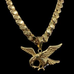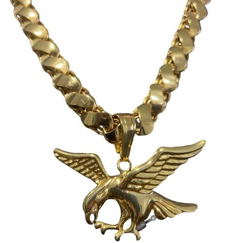 Cordão Friso S 13mm + Pingente Águia - Banhado a ouro