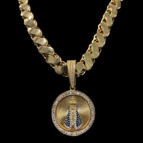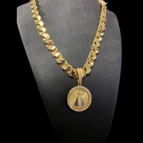 Cordão Friso S 13mm + Pingente Nossa Senhora Banhado a ouro