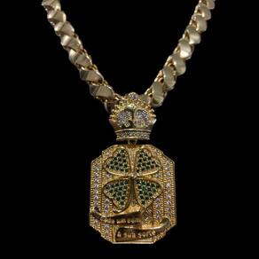 Cordão Friso S 13mm + Pingente Trevo Sorte - Banhado a ouro