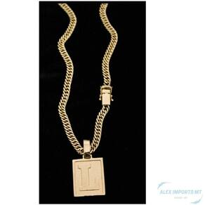 CORRENTE GRUMET DUPLO FECHO LATERAL DUPLO (7MM) & PINGENTE (LETRA) PERSONALIZADO (MEDIO) - BANHADO EM OURO 18K