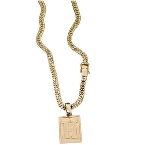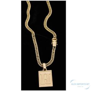CORRENTE GRUMET DUPLO FECHO LATERAL DUPLO (7MM) & PINGENTE (LETRA) PERSONALIZADO (MEDIO) - BANHADO EM OURO 18K