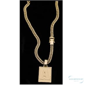 CORRENTE GRUMET DUPLO FECHO LATERAL DUPLO (7MM) & PINGENTE (LETRA) PERSONALIZADO (MEDIO) - BANHADO EM OURO 18K