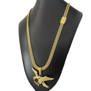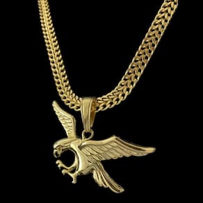 Cordão Lacraia 10mm + Pingente Águia - Banhado a Ouro 18k