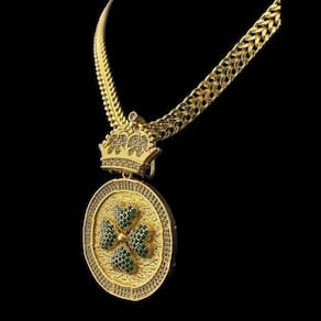 Cordão Lacraia 10mm + Pingente Trevo - Banhado a Ouro 18k