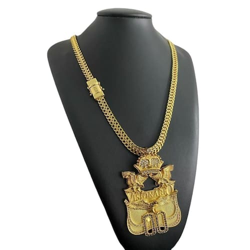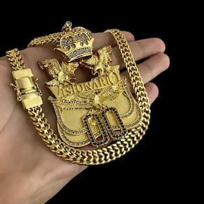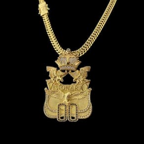 Cordão Lacraia 10mm + Pingente Visionário 00 Banhado a Ouro
