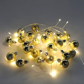 Cordão Luminoso Natalino 1,5 Metros Led Bolas de Natal Taschibra Características Gerais do Produto: Dimensões AxLxP CM : 150 Cor da luz: 3000K Quente Produzido em: Plástico Voltagem: 3 Três Pilhas AA Potência: 0,6W Eficiência luminosa: Decorativo Cor do cabo: Transparente : 90 dias junto ao fabricante Aplicação: Interno ou Abrigado Acompanha lâmpada: Não necessita, LED já integrado Número de lâmpadas: 48 Leds Acompanha o produto: 01 Cordão : 90 dias Marca: Não Informado Ean: 7908781103794