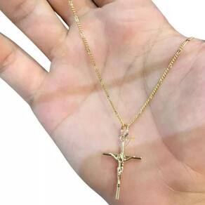 pingente formato cruz com cristo, med. 3,0 x 1,9 cm unissex