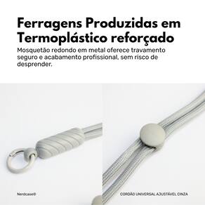CordãoLeve praticidade para o seu dia a dia com o Cordão Universal da NERDCASE! Produzido em poliéster resistente, ele é compatível com qualquer modelo de celular com capa, e acompanha base universal. Medindo 75cm de comprimento e 0,5mm de espessura, a cor cinza combina com qualquer estilo, oferecendo um visual discreto e moderno. Com ajuste de comprimento, é ideal para usar no pescoço ou transversal, em passeios, shows, viagens ou no corre diário.