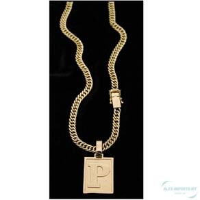 CORRENTE GRUMET DUPLO FECHO LATERAL DUPLO (7MM) & PINGENTE (LETRA) PERSONALIZADO (MEDIO) - BANHADO EM OURO 18K